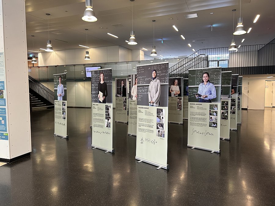 A highlight of the workshop “Women in Port-Hamiltonian Systems” was the opening of the exhibition “WOMEN OF MATHEMATICS FROM AROUND THE WORLD – A gallery of portraits” together with the sister exhibition “Women of the CRC 1701”. Both exhibitions feature women mathematicians. While the first is already established, the sister exhibition focuses on the women mathematicians of CRC 1701.